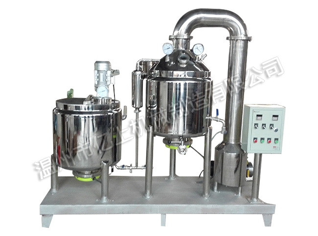 9、根據經驗,大約40分鐘左右,濃縮完畢,停止加熱,關閉真空泵抽氣閥,打開濃縮罐排空閥,真空度降到常態后,開啟出料閥放料,同時應將回收罐中的水放凈,以備下次工作。